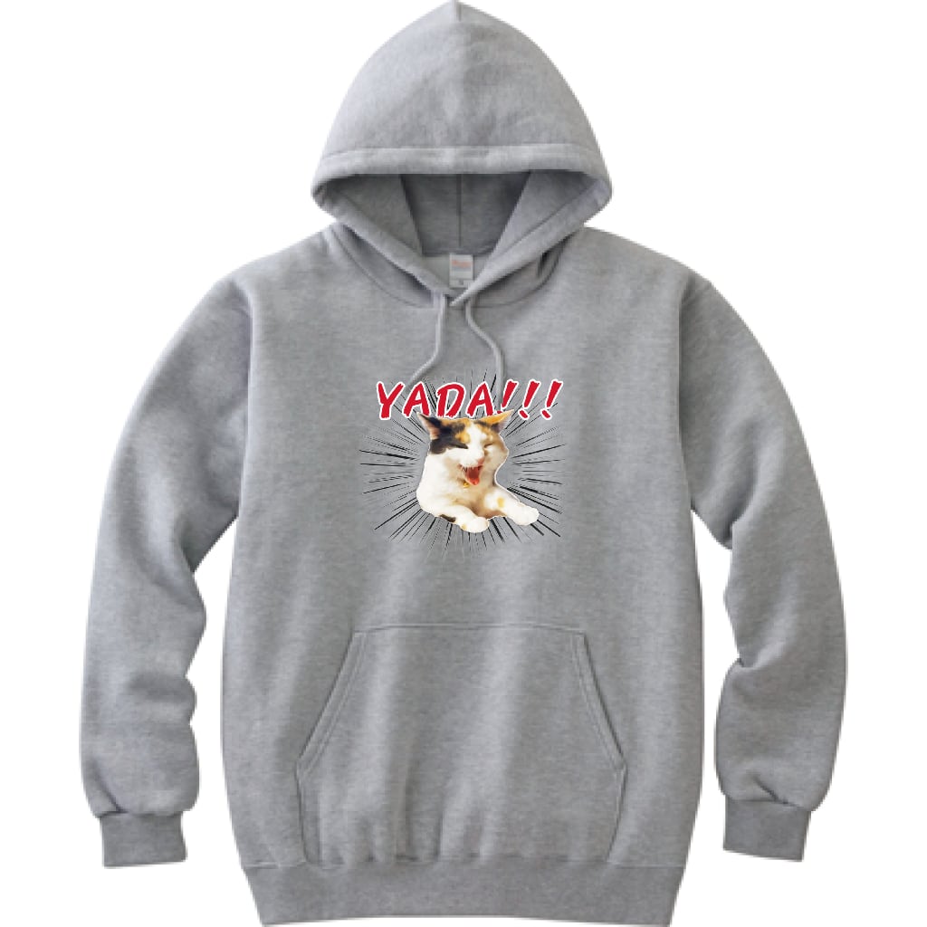 当店の招き猫みこがあなたの「ヤダ!!」の気持ちに寄り添うフーデッドパーカーです。